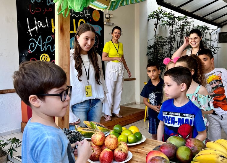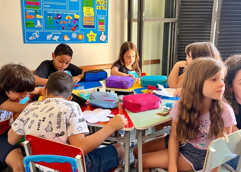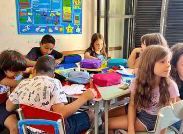 Nosso aluno estuda todo o vocabulário aprendido em sala de aula e fazemos uma atividade que estimula a fixação do conteúdo para um desafio de soletrar!