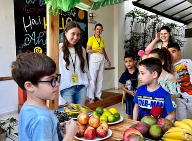 Simular a realidade de um mercado com frutas, verduras, legumes e outros produtos para incentivar os alunos a aprenderem as necessidades básicas é o objetivo dessa atividade.