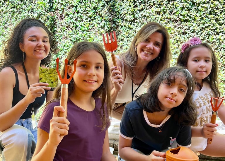 Um momento de contato com a natureza permite aos alunos aprender sobre plantas, cultivo e cuidados, com acompanhamento anual para estimular a expectativa e satisfação ao colher o que foi plantado.